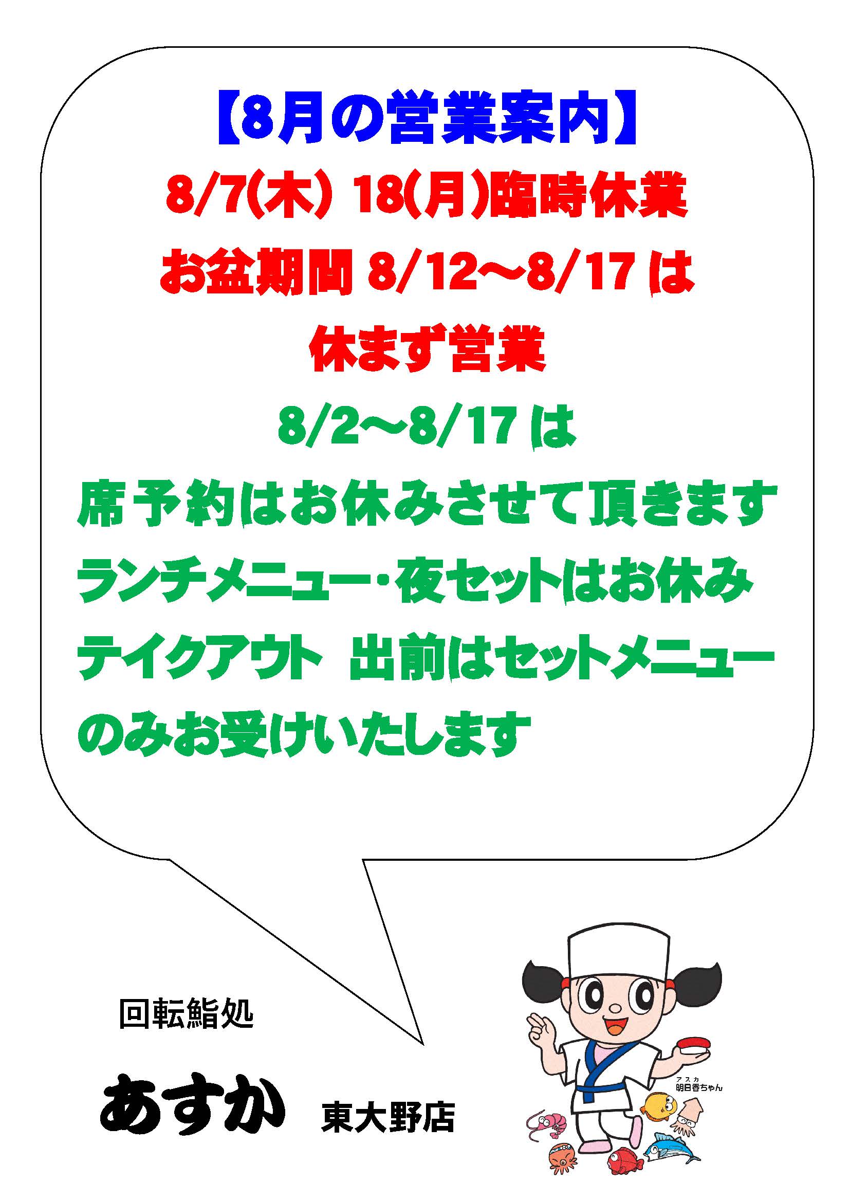 2025.07.14 8月の営業案内です